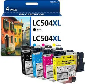 MEZOO LC504XL Ink Cartridge High Yield Replacement for Brother LC504 LC504 XL Ink Cartridges Compatible with Brother MFC-J1355DW MFC-J1365DW MFC-J1367DW Printers (4-Pack,Black/Cyan/Magenta/Yellow)