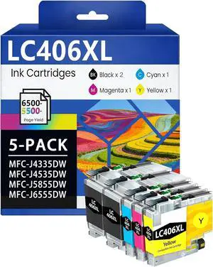 LC406XL LC406 Ink Cartridges High Yield (5 Pack, 2 BK/C/M/Y) Compatible for Brother LC406XL LC406 XL LC406 MFC-J4335DW MFC-J4535DW MFC-J5855DW MFC-J6555DW MFC-J6955DW Printer