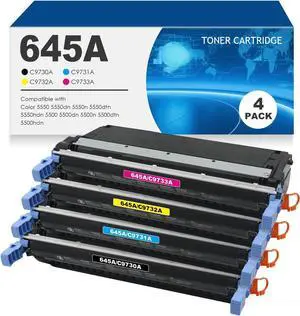 645A Toner Cartridge 4-Pack High Yield 645A C9730A C9731A C9732A C9733A Toner Replacement for HP 645A Toner for Color 5500 5500n 5500dn 5500dtn 5500hdn 5550 5550n 5550dn 5550dtn Printer (BK/C/M/Y)