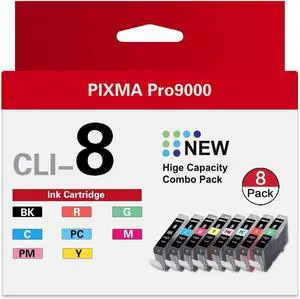 CLI-8 8 Color Multi Pack Ink Tank 8-Pack Vowdic Compatible Replacement for Canon CLI-8 Ink Cartridges with Pixma Pro9000 and Pro9000 Mark II Printer (1BK 1C 1M 1Y 1PC 1PM 1R 1G)