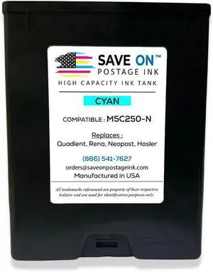 Quadient Memjet M5C250-N Compatible High Capacity Cyan Printer Ink Tank (250ml) - Printer Ink Cartridge for Mach Series Quadient & Hasler Printers - Fade-Resistant Replacement Inkjet Printer Ink