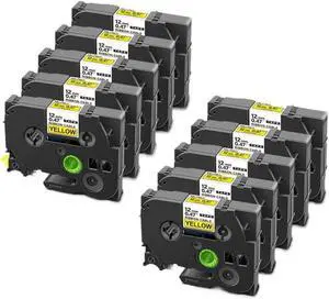10PK FX631 Flexible Label Tape 12mm Black On Yellow Printer Ribbon Compatible with Label Maker
