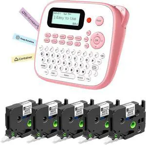 Pink Label Maker with 5PK 12mm White Tapes, Kids Label Maker, QWERTY Keyboard Labeler Machine Handheld, D210S Easy Labeler with Multiple Fonts Frame Barcode for Home Office Small Business Gifts