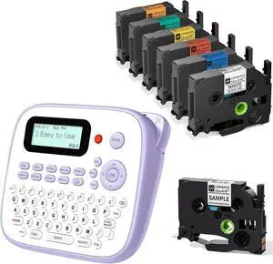 D210S Label Maker Machine with 5PK Clear Tapes Waterproof, Portable Labeler with Keyboard Powered by Type-C, Multiple Symbols for Home Small Business School Kids Use, Purple