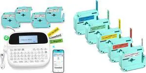 Label Maker Machine with 5PK White & 4PK Color Tapes, Rechargeable Backlit Labeler for 12mm 0.47 White Waterproof-Labels, Bluetooth Label Printer, for Office Home School