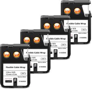 4 X Compatible with Dymo Rhino XTL Flexible Cable Wrap Label Tape 1868806 A1868806 Black on White 12mm 1/2 inch x 18 Feet Replacement for Rhino XTL-300 XTL-500 Label Maker