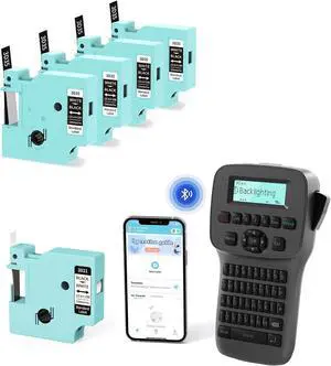LM1600 Rechargeable Label Maker Machine with 5 DZ Series Label Tape, 1/2 Inch Tape Compatible with Dymo 160 280 210D D1600 D1600D LM1600 Label Maker