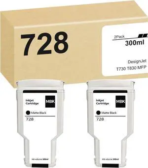 DesignJet 728 Matte Black (2-Pack) Replacement for HP 728 Matte Black 300-ml Ink Cartridge, F9J68A use for DesignJet T830 MFP & T730 Large Format Plotter Printers
