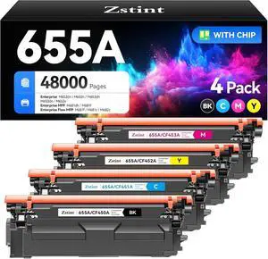 655A Toner Cartridge (with New Chip) Replacement for HP 655A CF450A CF451A CF452A CF453A Toner for Color Laser Enterprise M652n M652 M653dn M653x M653 MFP M681dh M682z Printer, 4 Pack