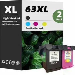 Compatible for HP 63 63XL Ink Cartridges for HP 63 1111 2130 2131 3630 3632 3830 4520 4650 5740 F6U61A Printer,Black+Color