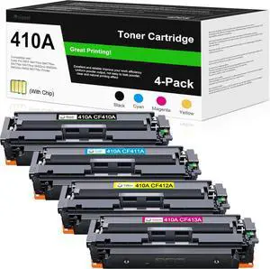 410A Toner Cartridge High Yield 4-Pack Replacement for 410A 410X Toner CF410A CF411A CF412A CF413A, Works with Color Pro MFP M477fnw M477fdw M477fdn M452dn M452nw Printer, (Black Cyan Yellow Magenta)