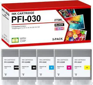 PFI-030 Pigment Ink Tank 55ml 5-Pack PFI-030 Ink Cartridge Replacement for Canon PFI030 PFI-030MBK PFI-030BK PFI-030C PFI-030M PFI-030Y Ink for ImagePrograf TA-20 TA-30 TM-240 TM-340 Printer Ink