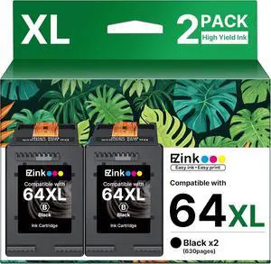 E-Z Ink 64XL Black Ink Cartridge Remanufactured Replacement for HP 64xl Black Ink Cartridge HP Ink 64 Works with HP Envy Photo 7855 7858 6252 6255 7800 7100 7155 7158 Tango Series Printers (2 Black)