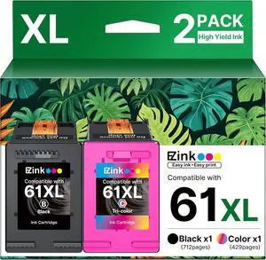 61XL Ink Cartridge Remanufactured for HP Ink 61 for HP 61 Ink Cartridge Combo Pack to Use with Envy 4500 5530 4502 4501 5535 OfficeJet 4630 4635 DeskJet 2540 1000 1010 1510 (1 Tri-Color, 1 Black)
