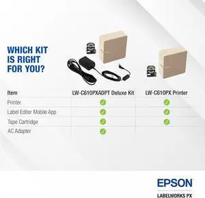 LABELWORKS Epson LW-C610PX Power Bundle LW-C610PX Label Maker and AST1116 AC Adapter Power Cord
