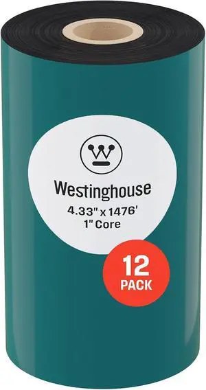 Westinghouse Thermal Transfer Ribbon, 4.33" x 1476', 1" Core, Compatible with Zebra ZT410, ZT420, ZT610, ZM400, Premium Wax Resin Enhanced Ink Side Out Wax Ribbon for Thermal Printers, Black, 12 Rolls