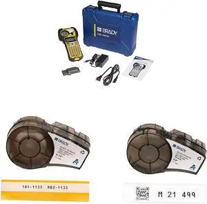 Brady M210 Portable Label Printer Kit (M210-KIT), Yellow/Black & Authentic (M21-1500-427) Self-Laminating Wire Wrap & Authentic (M21-750-499) Multi-Purpose Nylon Label