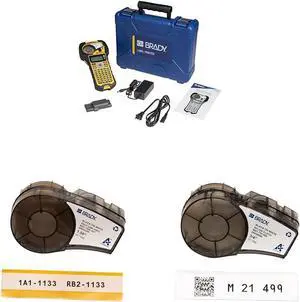 Brady M210 Portable Label Printer Kit (M210-KIT), Yellow/Black & Authentic (M21-750-595-WT) All-Weather Vinyl Label & Authentic (M21-500-595-WT) All-Weather Vinyl Label