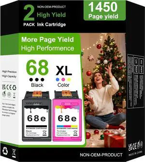 68XL 68e Ink Cartridges Black Color Combo Pack Replacement for HP 68 XL HP68 Work for 6100e 6500e Printers for Envy 6152e 6155e 6552e 6555e 6558e 6110e 6110r 6120e 6130e 6131e 6132e 6165e 6520e 6530e