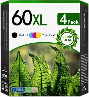 LD Remanufactured Replacement Ink Cartridges for HP CH563WN HP 61XL / 61 High-Yield Black (4 Pack) for the HP ENVY 5530, 5531, HP DeskJet 3054, J610a, 2514, 3512, 3056A, OfficeJet 4632 DeskJet 3056A