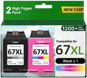 67XL Ink Cartridges Compatible for HP 67XL Ink Cartridges Black/Color Combo Pack for HP Ink 67 Fit for DeskJet 2700e 2700 2855e 2827e 2755e 2755 4155e 4255e for Envy 6000 6055e 6400 Printer (2-Pack)
