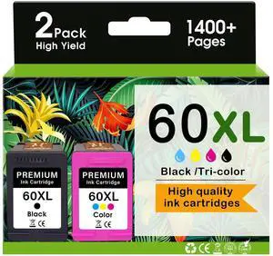 60XL Ink Cartridge Replacement for HP 60 Ink Cartridge Black and Black Combo Pack Color 60XL High Yield Work for PhotoSmart D110 C4780 C795 C4680 C4650 Deskjet D2680 F2430 Envy 110 120 Printer (2Pack)