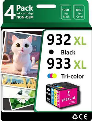 932XL 933 XL Ink Cartridge Compatible for HP 932XL 933XL 932 XL 933 XL Combo Pack (XL Black, Cyan, Magenta Yellow) to use with HP Officejet 6100 6600 6700 7110 7510 7610 7612 7620 Printers