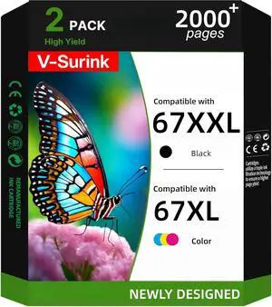 67 XXL Black XL Color Combo Pack Ink Cartridges Replacement for HP Ink 67 HP67 HP67XL for DeskJet 2755e 2700 2855e 2800 2752 2742e 4155e 4255e 4100 Envy 6055 6055e 6455e Printer