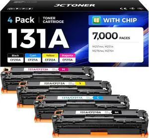 131A Toner Cartridge 4-Pack High Yield Replacement for HP 131A CF210X CF211A CF212A CF213A 131X Compatible for HP LaserJet Pro 200 color MFP M276nw M276n M251nw M251n Printer Black Cyan Yellow Magenta