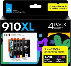 910XL Ink Cartridges Combo Pack Replacement for HP 910 XL Compatible with Officejet Pro 8025e 8020 8028 8035e 8023 Officejet 8010 8015e Printer, 4 Pack(Black, Cyan, Magenta, Yellow)
