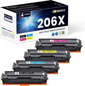 206X Toner Cartridges 4 Pack High Yield Set Replacement for HP 206X Black Cyan Yellow Magenta Color Pro M255dw M255nw; MFP M282nw M283cdw M283fdn M283fdw Ink Cartridges with Chip