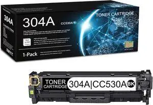 1 Pack 304A Black Toner Cartridge (with Chip) | Replacement for HP 304A Work with CP2025 CP2025x CP2025n CP2025dn CM2320n MFP CM2320nf MFP CM2320fxi MFP | CC530A