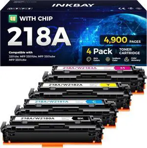 218A 218X Toner Cartridges Set 3301fdw 4-Pack with chip Replacement for HP 218A 218X W2180A W2180X Toner Compatible with Color LaserJet Pro MFP 3301cdw 3301sdw 3201dw Printer Black Cyan Yellow Magenta