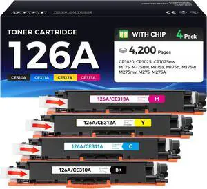 126A Toner Cartridge Set 4-Pack High Yield Replacement for HP 126A CE310A CE311A CE312A CE313A Compatible for HP LaserJet Pro 100 color MFP CP1025 CP1025nw M175nw TopShot M275 Printer Ink Black Copier