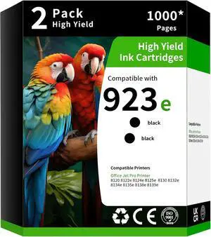 923e 923xl Black Ink Cartridges Combo Pack with Chips Replacement for HP Ink 923e 923XL Black for OfficeJet 8120e 8122e 8125e Pro 8135e 8138e 8139e 8130e 8132e Printer (2Black)