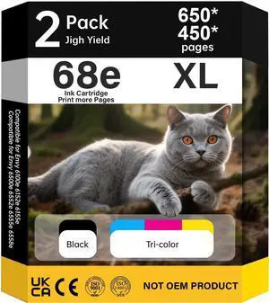 68XL 68e High Yield Ink Cartridge Black Color Combo Pack Compatible for 68 68e Ink Cartridge for Envy 6155e 6500e 6552e 6555e 6558e 6100e 6152e Printer (2 Pack 1 Black, 1 Tri-Color)