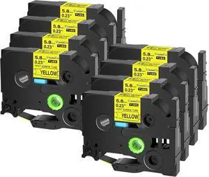 8PK Compatible for Ptouch HSe-611 HSe611 HS-611 HS611 Black on Yellow 5.8mm 0.23'' Heat Shrink Tubing for Wire Cable for PT2700 PT2710 PT2730 PT2730VP PT3600 Label Maker Tape