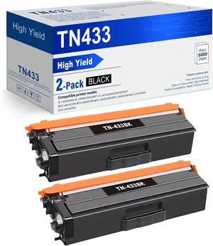 TN-433BK TN433BK 2-Pack High Yield Black Toner Cartridge Compatible TN433BK TN-433BK Replacement for Brother TN433 TN-433 TN 433 MFC-L8900CDW HL-L8360CDW HL-L8260CDW Printer.