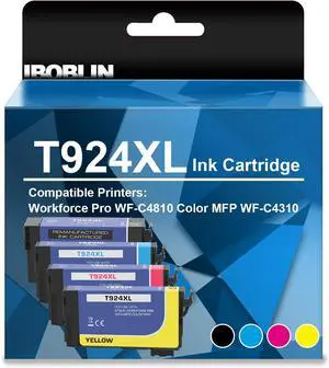 Remanufactured T924XL Ink Cartridge High Yield with Chip for T924 Ink Work for Workforce Pro WF-C4810 Color MFP WF-C4310(4packs,Black Cyan Magenta Yellow)