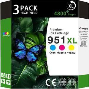951XL High Yield Ink Cartridges Compatible for Combo Pack HP 950 951 Replacement for Officejet Pro 8100 8600 8610 8615 8620 8625 8630 251DW 276DW Printers (Cyan/Magenta/Yellow 3-Pack, Non-OEM)