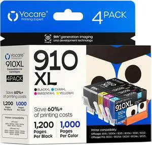 910XL High Yield Ink Cartridge Replacement for HP910XL HP910 910 XL Combo Pack Compatible with HP OfficeJet 9120OfficeJet 8010 8012 8013 8015 8020 8022 (Black Cyan Magenta Yellow 6 Pack)