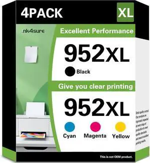 952XL Ink Cartridges Compatible for 952 952XL Ink Cartridges Combo Pack to use with OfficeJet Pro 8720 8715 8210 8710 7740 8703 8702 Printers, Black Cyan Magenta Yellow | N9K28AN Not the latest chip