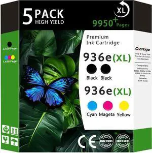936e 936XL High Yield Ink Cartridges Compatible for Combo Pack HP 936 Replacement for OfficeJet 9120 9122e OfficeJet Pro 9110b 9125e 9128e 9130b 9135e Printers (Black/Cyan/Magenta/Yellow 5-Pack)