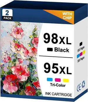 95xl 98xl Ink Cartridges Combo Pack Compatible for HP 95 98 Ink Replacement for PhotoSmart C4150 C4180 2575 8050 Deskjet 460 5940 Officejet H470 150 PSC 1600 2350 Printer (Black,Tri-Color,2 Pack)