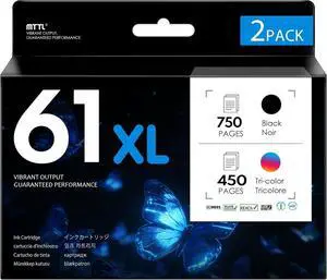 61XL 61 XL Ink Cartridge Combo Pack Replacement for HP 61 Ink Work with Envy 5530 5535 4500 4502 OfficeJet 4630 4635 2620 DeskJet 2540 1000 1010 1512 Printer (Black, Tri-Color)