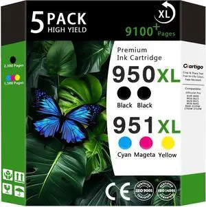 950XL 951XL High Yield Ink Cartridges Compatible for Combo Pack HP 950 951 Replacement for Officejet Pro 8100 8600 8610 8615 8620 8625 8630 251DW 276DW Printers (Black/Cyan/Magenta/Yellow 5-Pack)