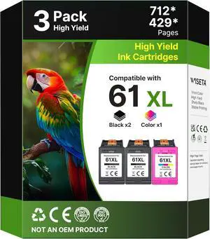61XL Ink Cartridges Black and Color 3-Pack Replacement for HP 61XL Ink Cartridge Combo Pack (2 Black, 1 Color) Work with HP Envy 4500 5530 4502 4501 5535 OfficeJet 4630 4635 DeskJet 2540 1000 1010