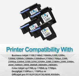 11 lnk Printhead Set Replaceable Printhead (with Chip) Replacement for HP 11 Designiet 100 120 500 800 Business Inkjet 1100 1200 C4810A C4811A C4812A C4813A Printer Replacement Part (4PK-BCMY)