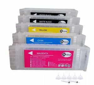 Kitclub 5 Pack T6941-T6945 Empty Refillable Ink Cartridge with Permanent Chip for E-pson SureColor T3270 T5270 T7270 - Use for UltraChrome XD 700mL Ink Carts
