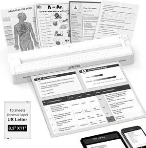 Portable Wireless Inkless Printer for Home Travel, M9 Small Bluetooth Thermal Printer Support 8.5" X 11" Letter & A4 Thermal Paper, Compatible with Phone, PC for School, Office, with 10 Paper